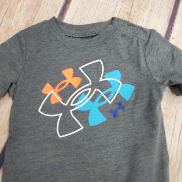 GRAY BODYSUIT WITH ORANGE/BLUE /WHITE/LOGO
